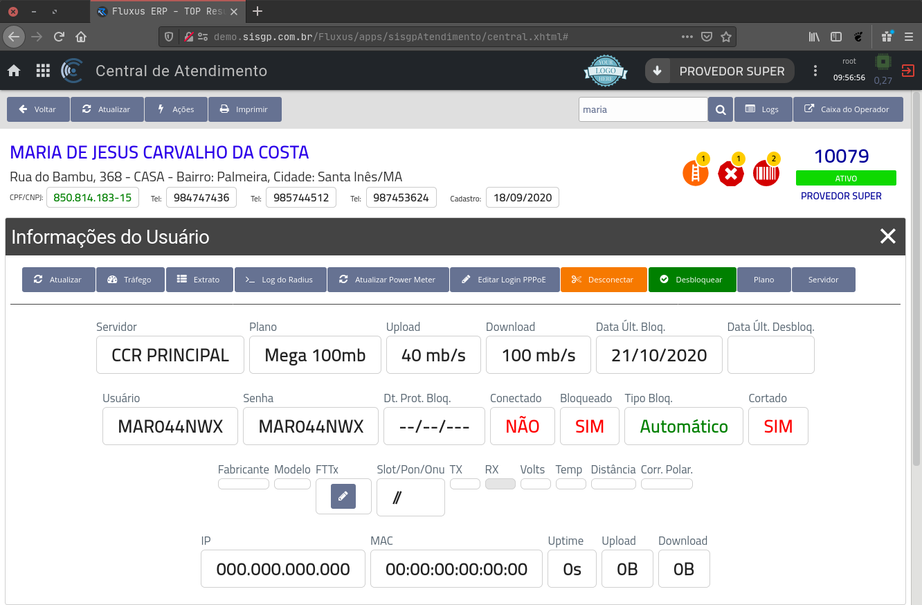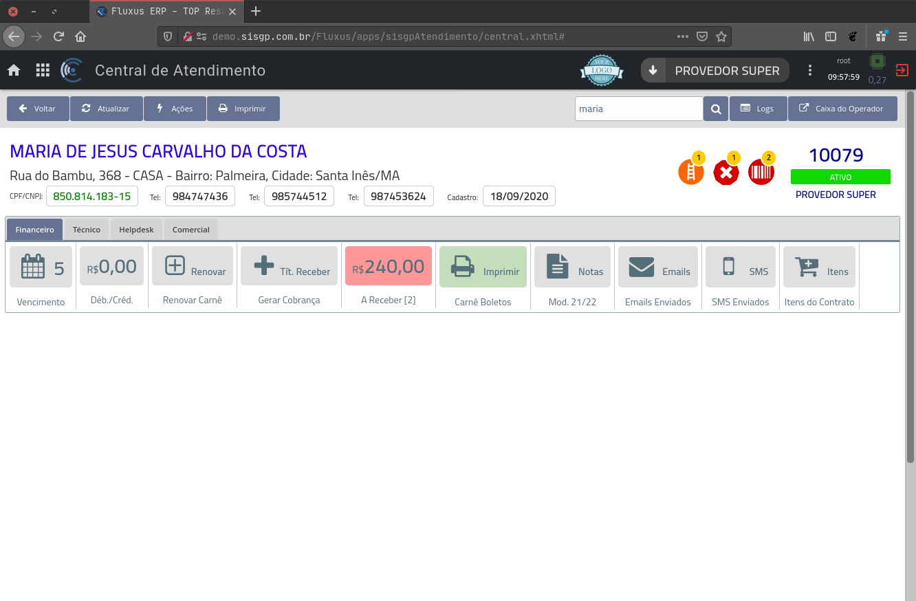 Rotinas de Troca de Vencimento, Carnê, Recebimentos, Notas Fiscais, Ordens de Serviço, Protocolos, Mudança de Plano, Desbloqueio em Confiança,