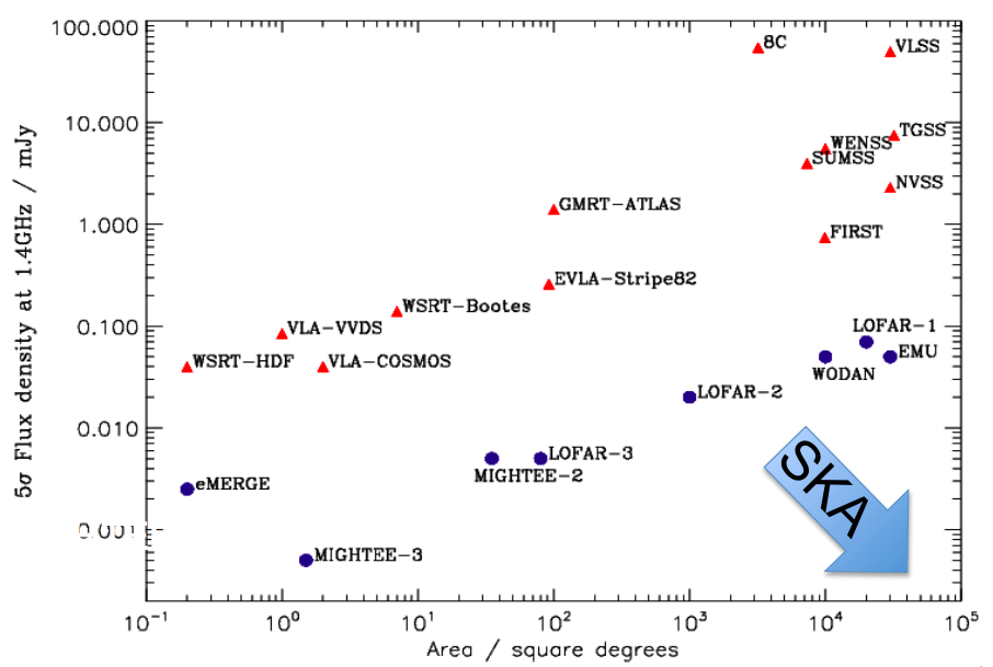 Tier-2 : ~100s of sq.deg to faint flux limits (25 μJy RMS @ 150 MHz)