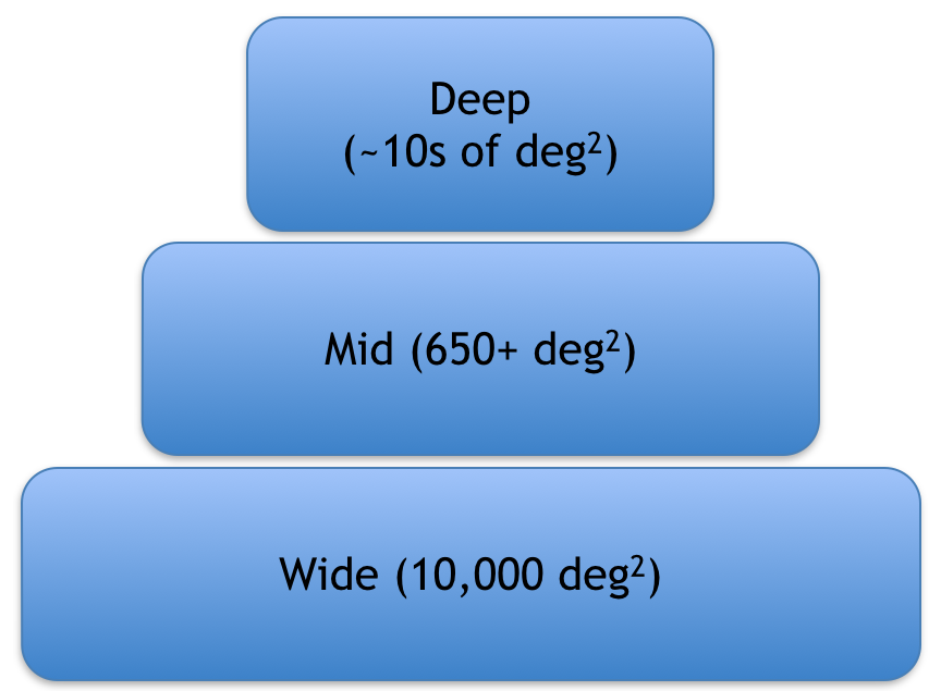 Tier-3 : ~10s of sq.deg to sensitivities > the deepest existing imaging
