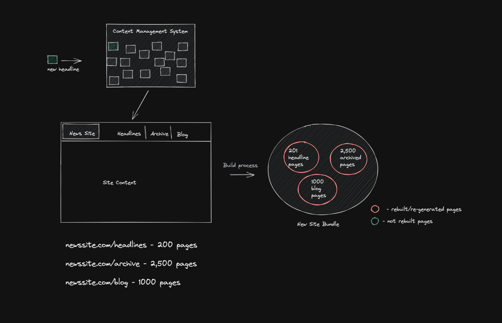 You can tell your build process to ignore other pages and only generate your site's critical pages. (i.e headlines WRT our earlier examples).