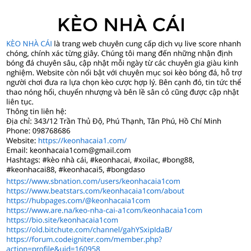 KÈO NHÀ CÁI là trang web chuyên cung cấp dịch vụ live score nhanh chóng, chính xác từng giây. Chúng tôi mang đến những nhận định bóng đá chuyên sâu, cập nhật mỗi ngày từ các chuyên gia giàu kinh nghiệm. Website https://keonhacaia1.com/