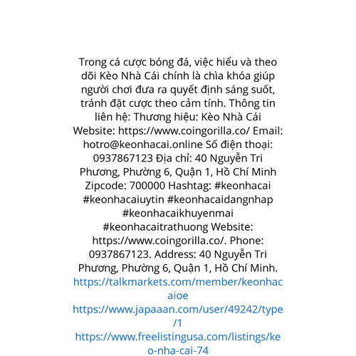 Website: https://www.coingorilla.co/. Trong cá cược bóng đá, việc hiểu và theo dõi Kèo Nhà Cái chính là chìa khóa giúp người chơi đưa ra quyết định sáng suốt, tránh đặt cược theo cảm tính. Thông tin liên hệ: Thương hiệu: Kèo Nhà Cái Website: https: