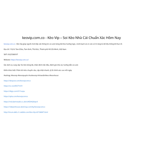 keovip.com.co - Kèo Vip giúp người chơi tiếp cận thông tin cá cược bóng đá theo hướng logic, minh bạch và có căn cứ rõ ràng từ dữ liệu thống kê thực tế. Địa chỉ: 192 Đ. Tam Châu, Tam Binh, Thủ Đức, Thành phố Hồ Chí Minh, Việt Nam SĐT: 0925588997