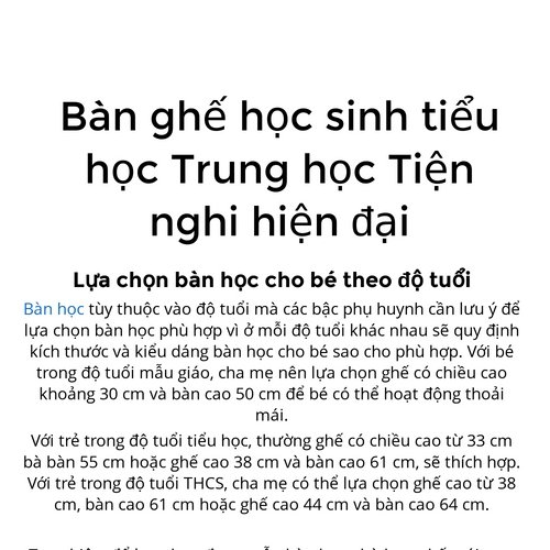 Bàn ghế học sinh tiểu học Trung học Tiện nghi hiện đại
