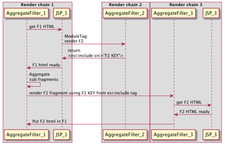 "<jahia_esi:include src=\"" + FRAGMENT KEY + "\"></jahia_esi:include>" This esi tags will be replace during aggregation phase only when the parent fragment html is fully rendered.