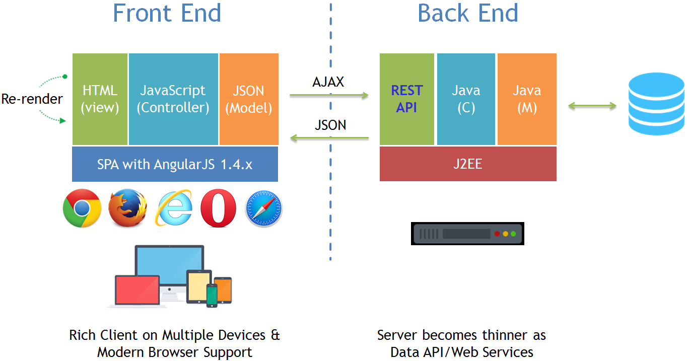 The sharings highlights the general architectural differences between the traditional J2EE Web Application Vs Single-page Application (SPA). In particular, a SPA build with AngularJS was used as an example in the demo.