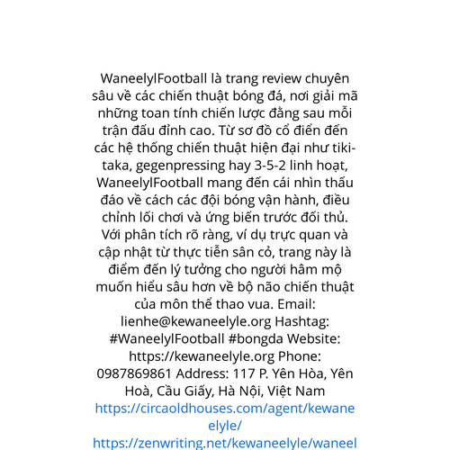Website: https://kewaneelyle.org WaneelylFootball là trang review chuyên sâu về các chiến thuật bóng đá, nơi giải mã những toan tính chiến lược đằng sau mỗi trận đấu đỉnh cao. Từ sơ đồ cổ điển đến các hệ thống chiến thuật hiện đại như tiki-taka, gege