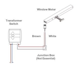 Our standard electric kits are pre-fitted with a window actuator which is linked to a wall-mounted transformer switch. This system cannot be directly connected to the mains.