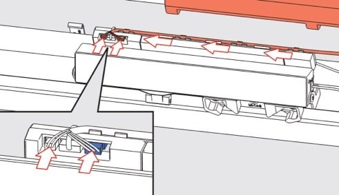 The green plug from the motor cable should be connected into the green horizontal socket.