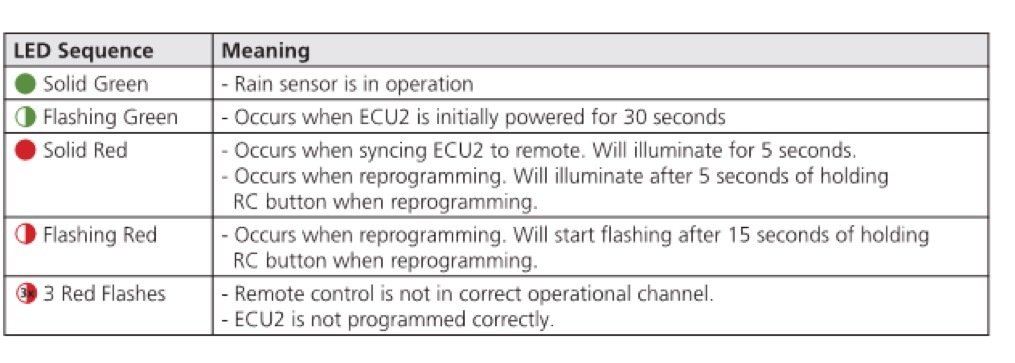 3. When the solid green LED light appears on the ECU2 this indicates that the rain sensor is in operation.
