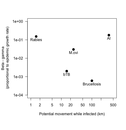 - Reservoir movement high and epidemic growth rate high => biosecurity/vaccination on recipient