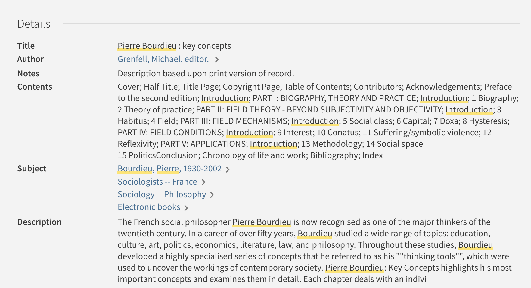 Michael James Grenfell. 2014. Pierre Bourdieu : Key Concepts. Vol. 2nd ed. Key Concepts. Abingdon, Oxon: Routledge.