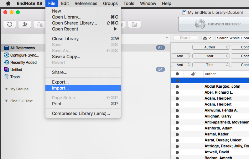 To sort duplicates from multiple imports choose "Find Duplicates" from the Reference Menu. In many cases Endnote will identify dupliucates at the point of import.