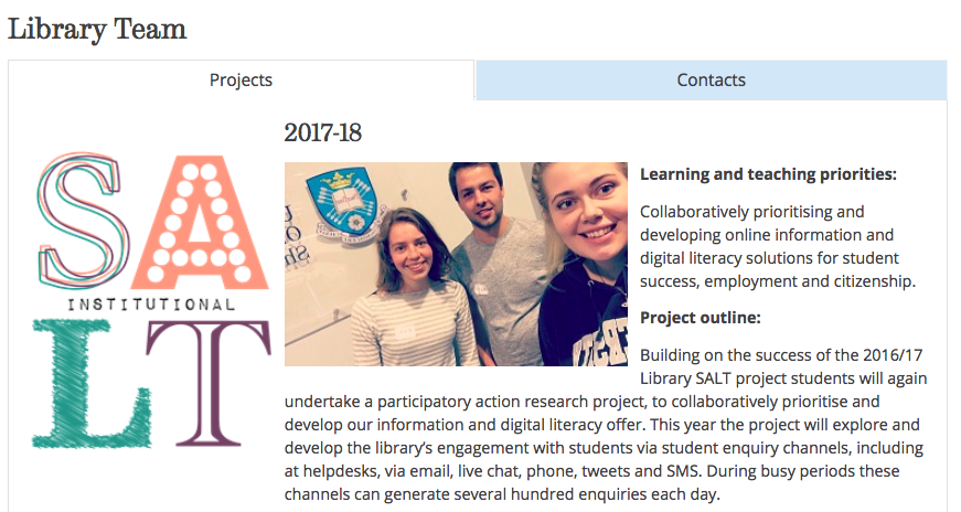 We have opportunity to build additional innovative partnerships with students, similar to the University of Sheffield S.A.L.T. program.