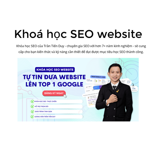 Khóa học SEO Trần Tiến Duy: Khóa học SEO của Trần Tiến Duy - chuyên gia SEO với hơn 7+ năm kinh nghiệm - sẽ cung cấp cho bạn kiến thức và kỹ năng cần thiết để đạt được mục tiêu học SEO thành công.