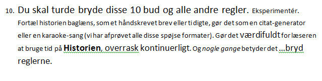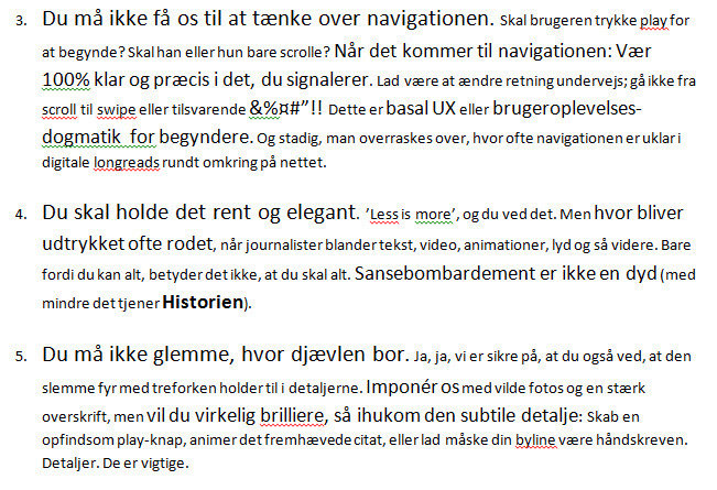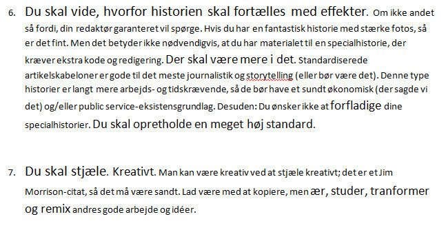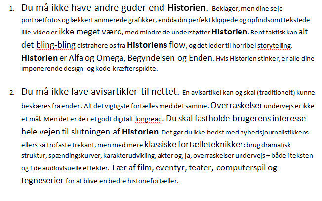 - Forskellige genrer: Nekrolog, reportage, portræt, historie, lister, data, vox pop...