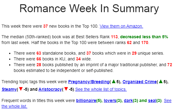 Nat is a romantic comedy writer, medical scientist and dance teacher, and creator of the Kindletrends newsletter for genre fiction authors.