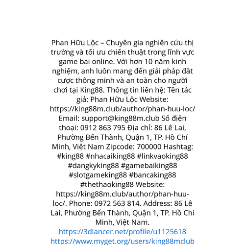 Website: https://king88m.club/author/phan-huu-loc/. Phan Hữu Lộc – Chuyên gia nghiên cứu thị trường và tối ưu chiến thuật trong lĩnh vực game bai online. Với hơn 10 năm kinh nghiệm, anh luôn mang đến giải pháp đăt cược thông minh và an toàn cho người