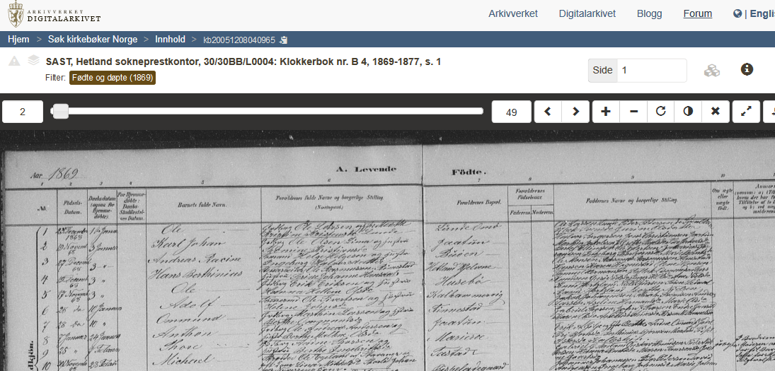 Best browse through the parish records for 1869 in Hetland