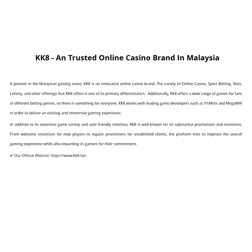 KK8 emerges as a promising online casino brand in Malaysia, combining a diverse gaming selection such as Online Casino, Sport Betting, Blackjack,... ✔️ Our Official Website: https://www.kk8.fun #kk8fun #kk8