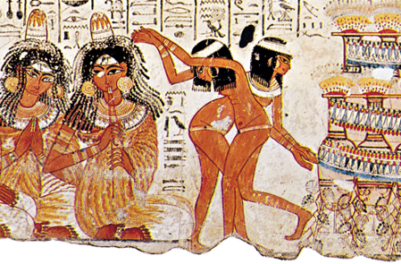 Egyptische dans, detail van een grafschilderij in Shaykh ʿAbd al-Qurnah, Egypt, c. 1400 bce; British Museum, London