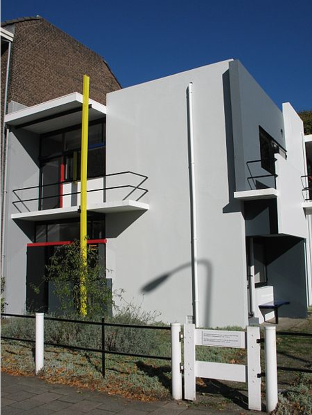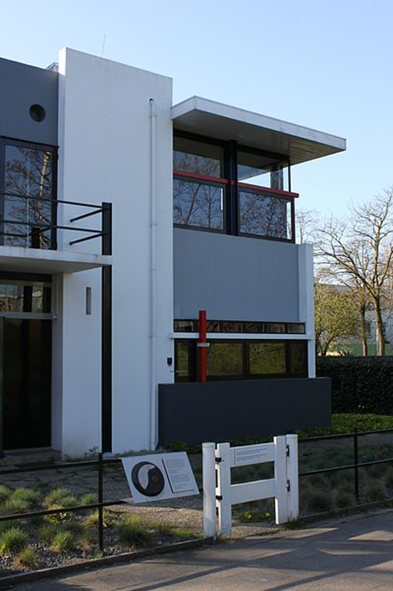 De Stijl: opentrekken gevels, kleur (rood blauw geel vs wit grijs zwart)