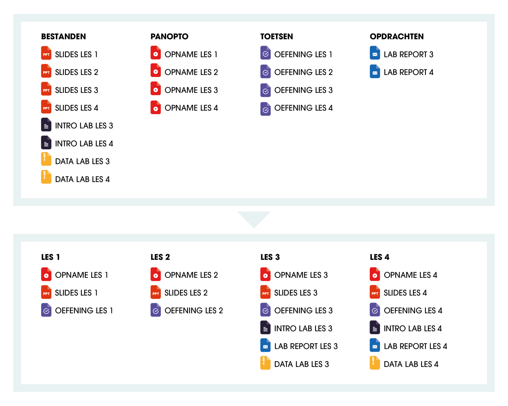 2. Structureer leermaterialen met Modules (reflecteert structuur lessen/thema's)