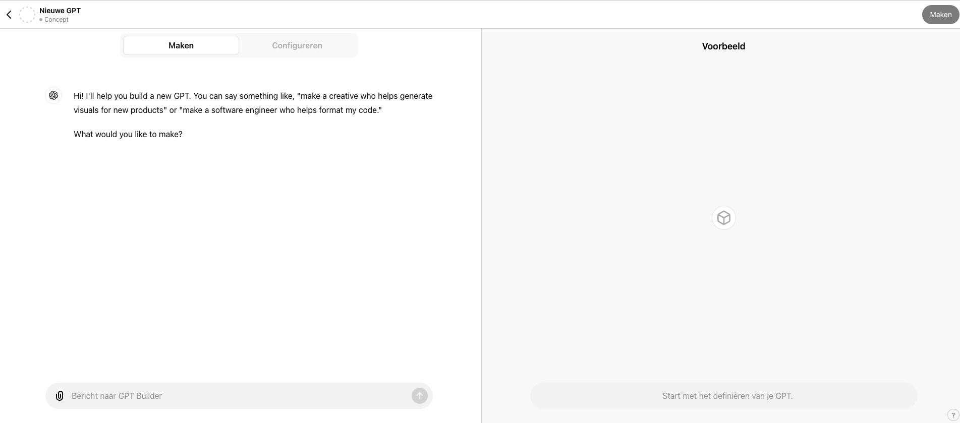 Je kan ook zélf een Custom GPT maken.
