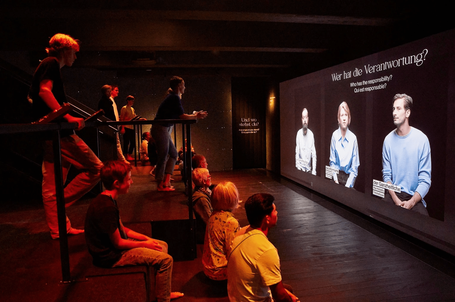 Im letzten Raum, noch bevor die Besucher*innen die Auswertung erhalten, debattieren diese vier Stereotypen 20 Minuten lang in einer Videoinstallation und tauschen ihre Argumente aus.