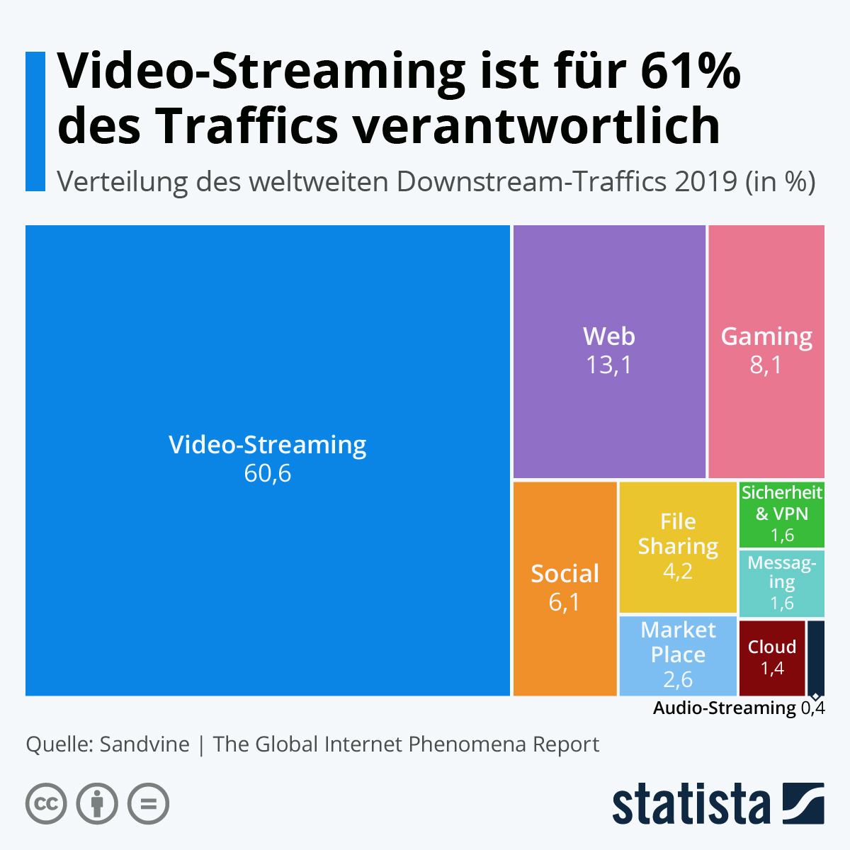 Ein Großteil des weltweiten digitalen Datentransfers entfallen auf das Streamen von Filmen und Webvideos.