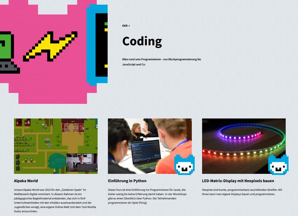 - alle Materialien kostenfrei und nachnutzbar (OER)