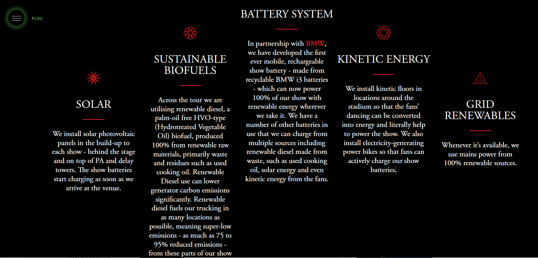 - Der gesamte Stromverbrauch eures Festivals wird zu 100% aus regenerativen Energiequellen gespeist: Aufbau, Bühne, Gastro, Licht ...