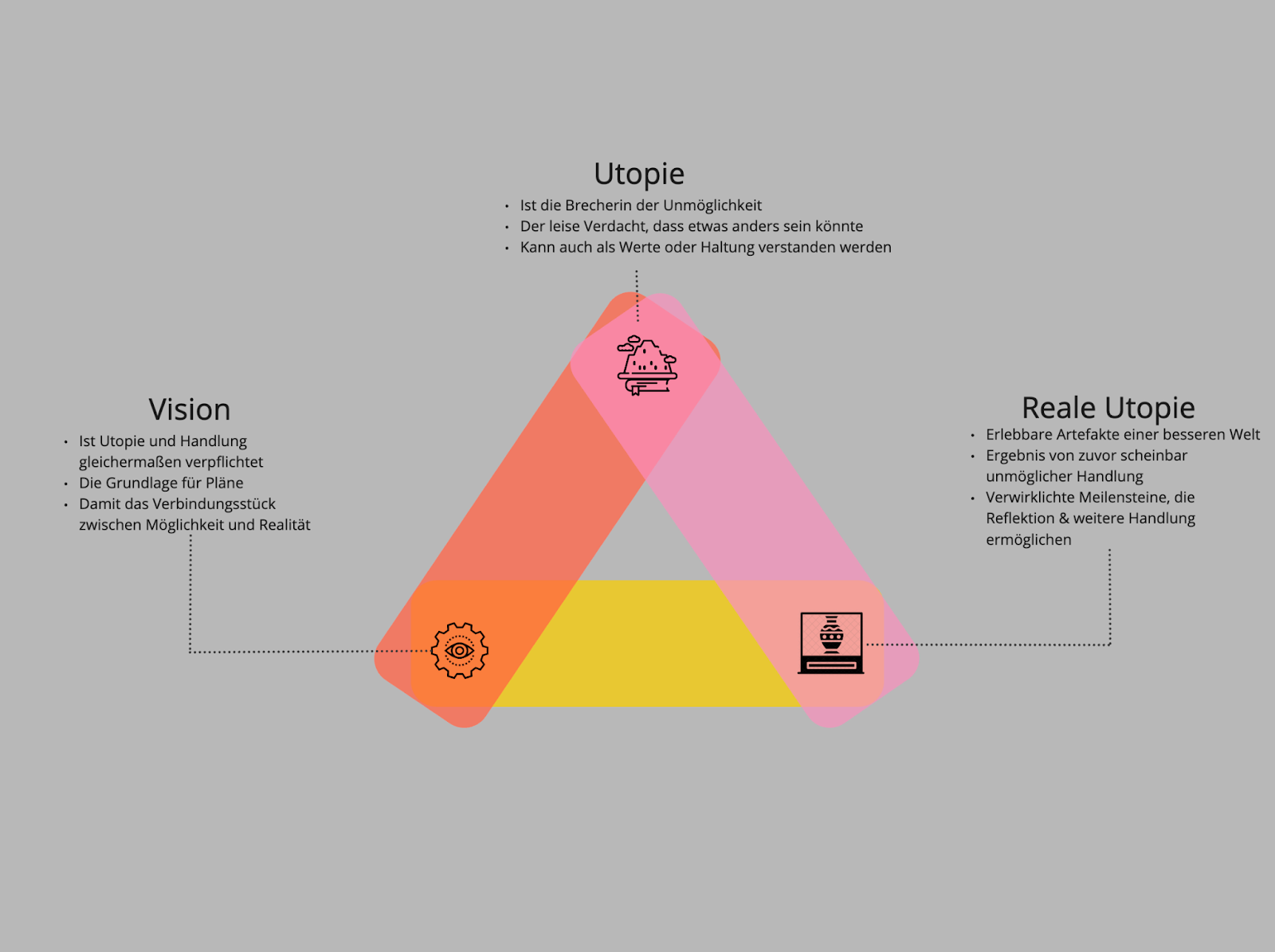 Wechselwirkung zwischen Utopie, Vision und handlungsmanifestierender, realer Utopie