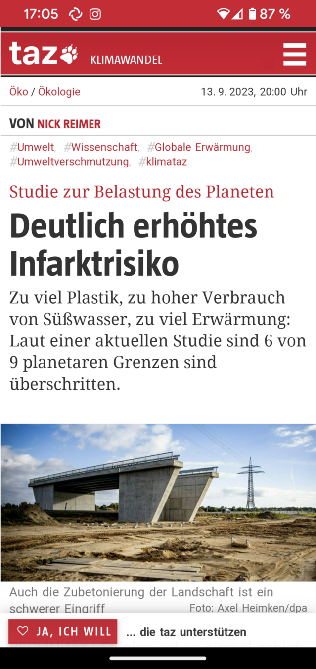 Es zeichnen sich ökologische Kipppunkte ab, die unwiderrufliche und nicht absehbare Folgen für menschliches Leben auf dem Planeten haben.