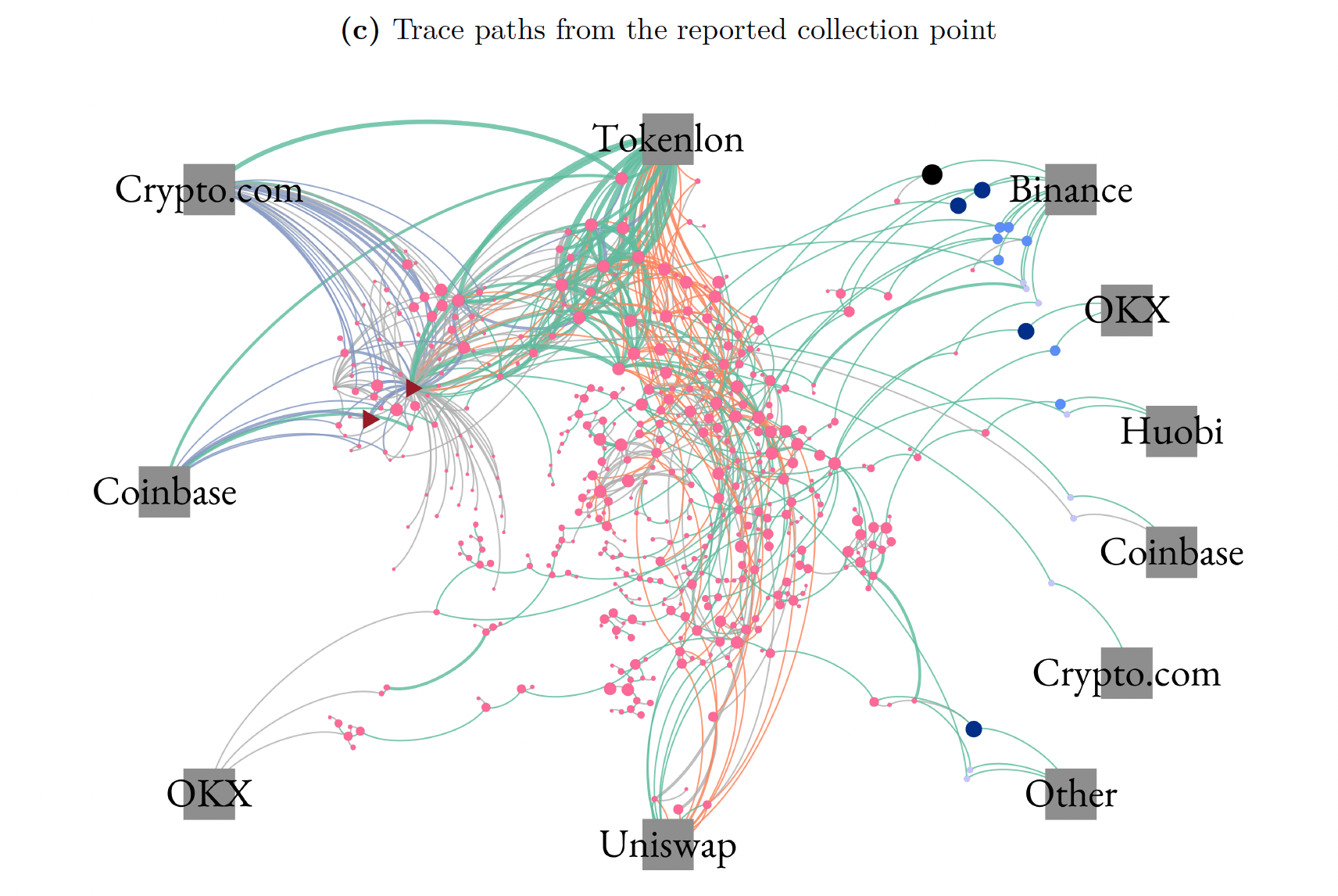 criteria to terminate a trace path if funds reach an address that is unlikely to be a scammer"