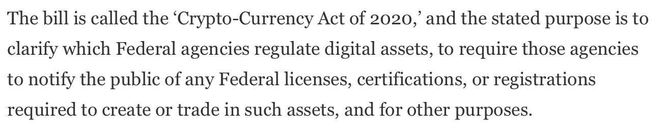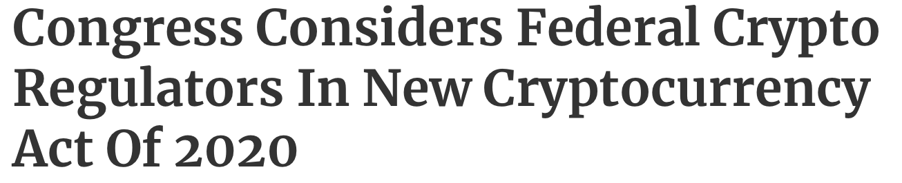 https://www.forbes.com/sites/jasonbrett/2019/12/19/congress-considers-federal-crypto-regulators-in-new-cryptocurrency-act-of-2020/#7ddcdfd65fcd