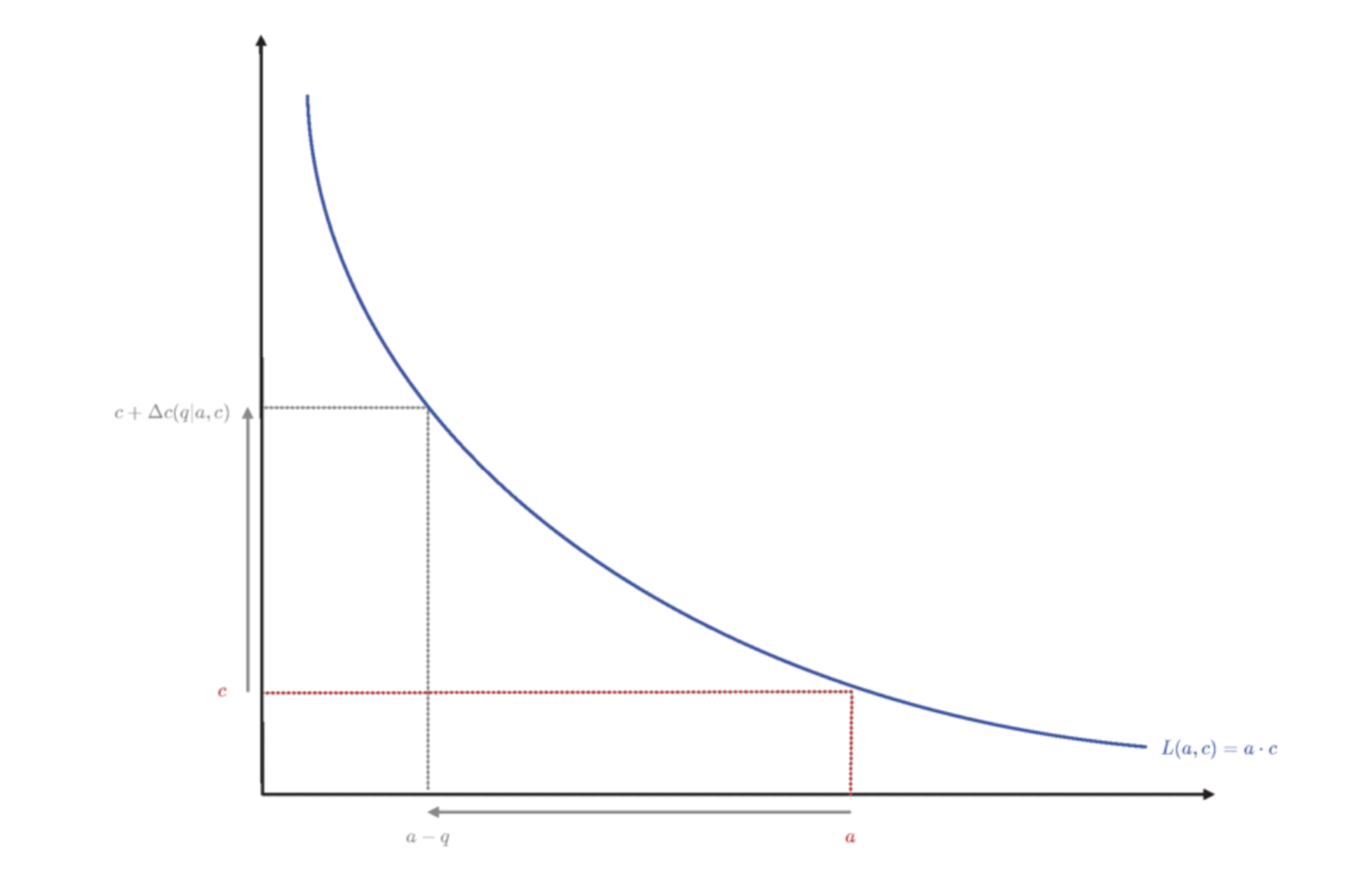 Most Common Pricing: Constant Product: \(L(a,c)=a\cdot c\)