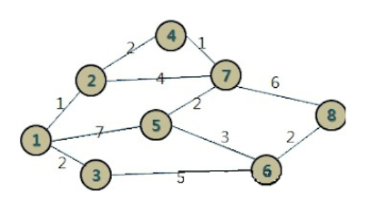 1 에서 8 까지 가는 최단경로는?