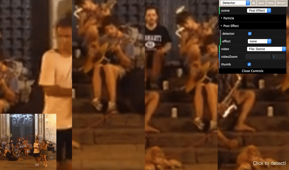 検出した人にフォーカス、画面分割することでアー写や MV 風に