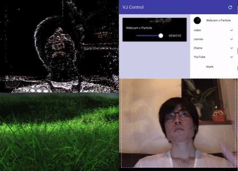 前のフレームとの色差分があるピクセルのみパーティクルを