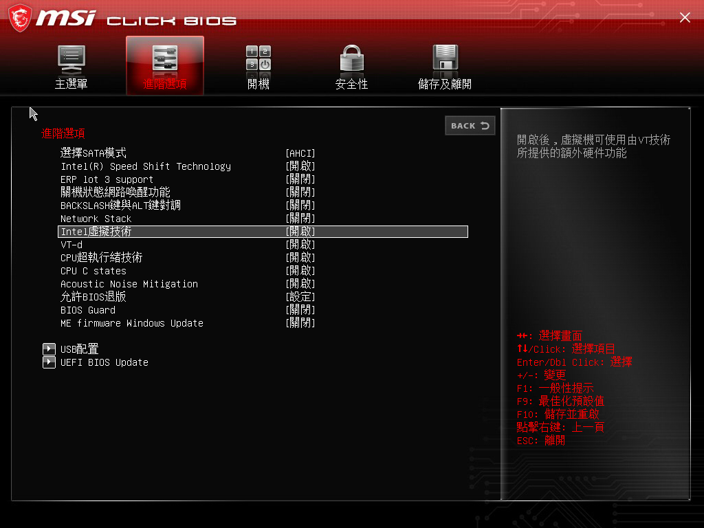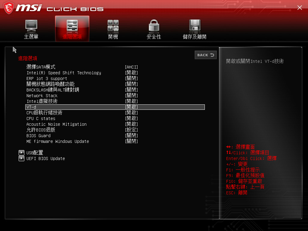 3. 找到 虛擬化技術、VT-d/VT-x 並開啟