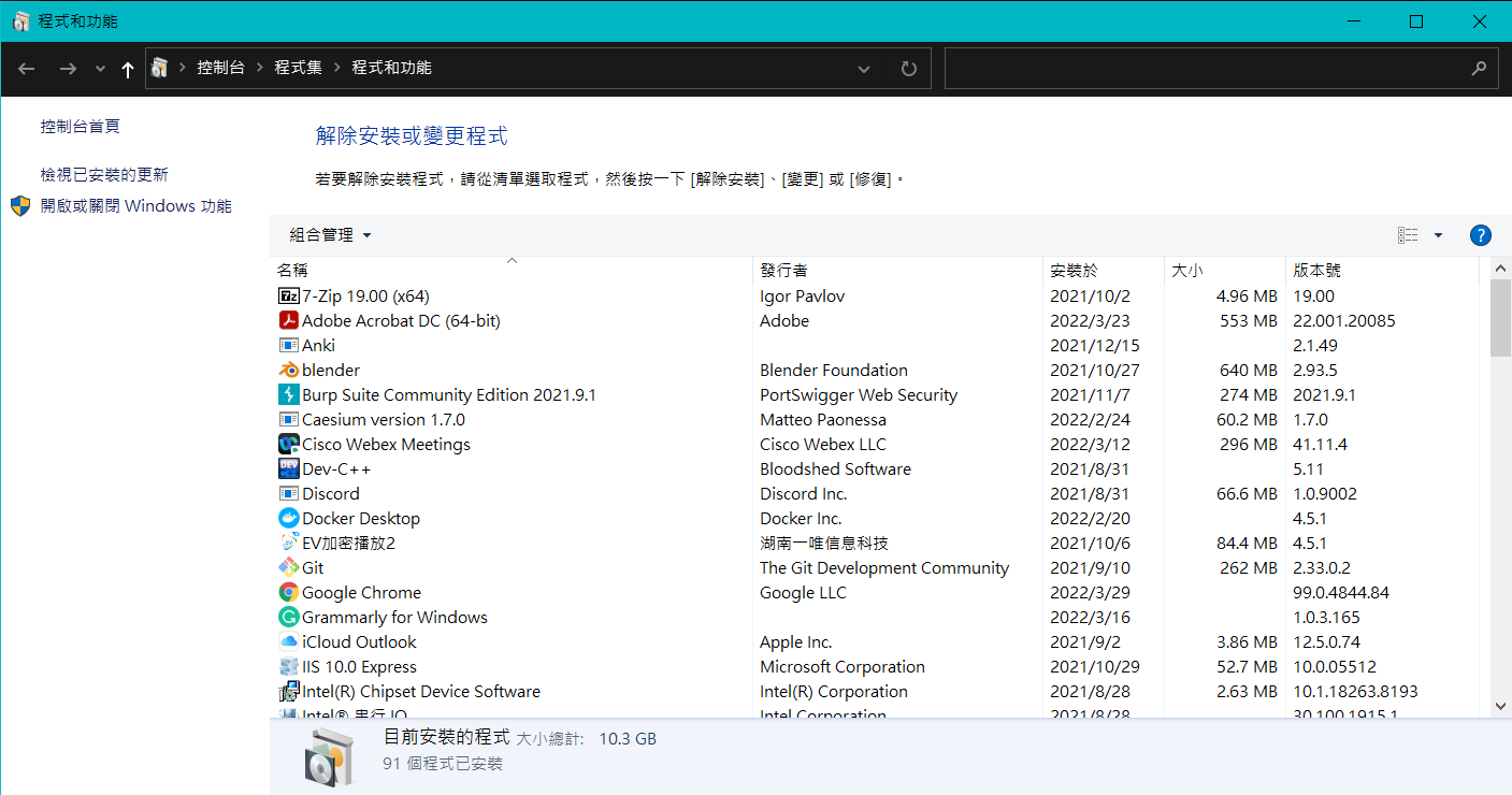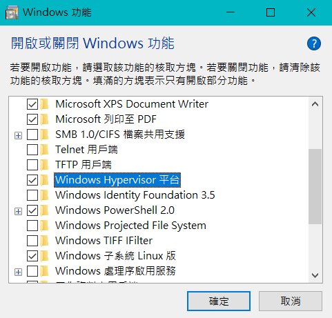 3. 在程式和功能當中開啟 Hyper-V 功能
