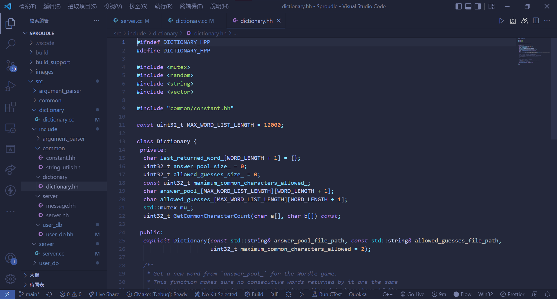 檢查 word 是否有在字典裡面,只要有出現在 answer_pool_ 或是 allowed_guessess_ 都算是有出現(回傳 true),否則沒有(回傳 false)。