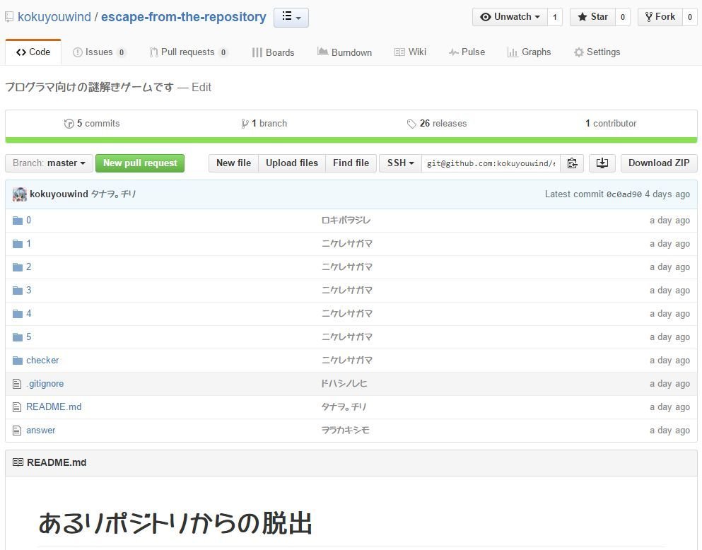 脱出ゲームを作ったので、それをPRするLTスライドです。 https://github.com/kokuyouwind/escape-from-the-repository