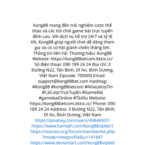 Website: https://kong88betcom.kktix.cc/ Kong88 mang đến trải nghiệm cược thể thao và các trò chơi game bài trực tuyến đỉnh cao. Với dịch vụ hỗ trợ 24/7 và tỷ lệ tốt, Kong88 giúp người chơi dễ dàng tham gia và có cơ hội giành chiến thắng lớn. Thông t