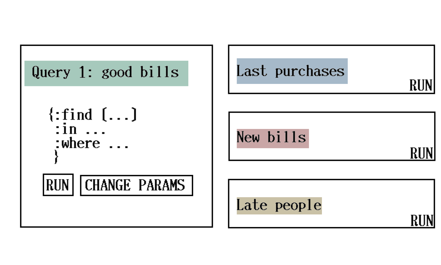 [$pur ?purchase2 :purchase/amount ?amount]]}}Improving experience through saved queries