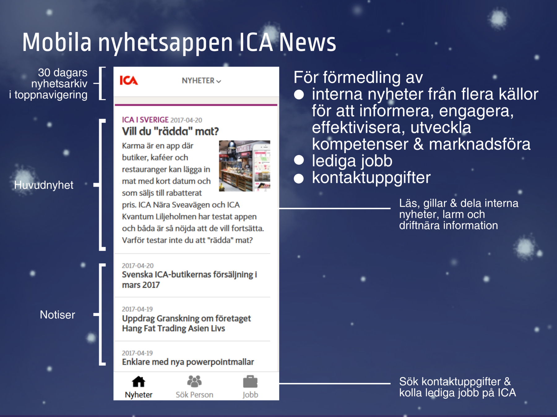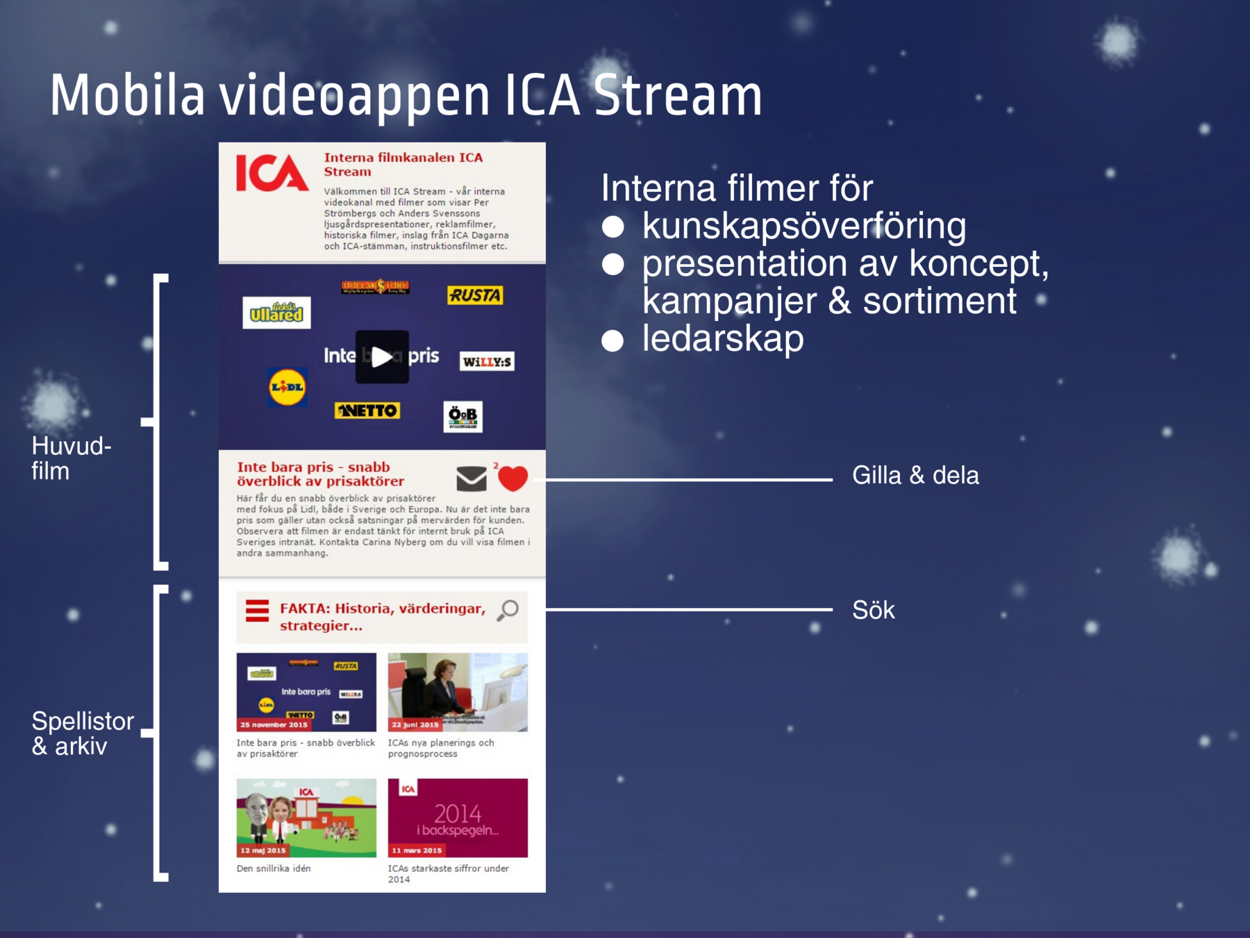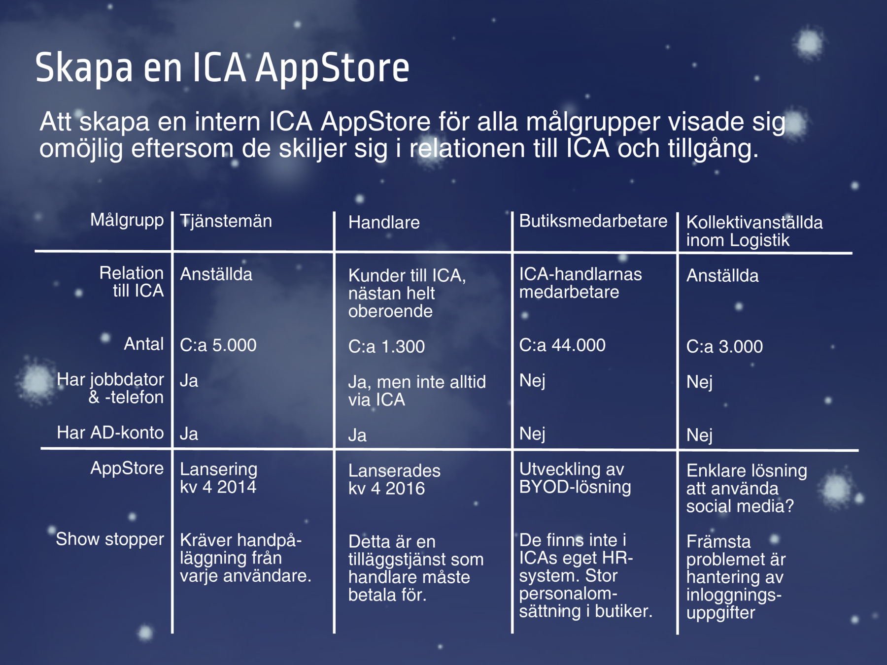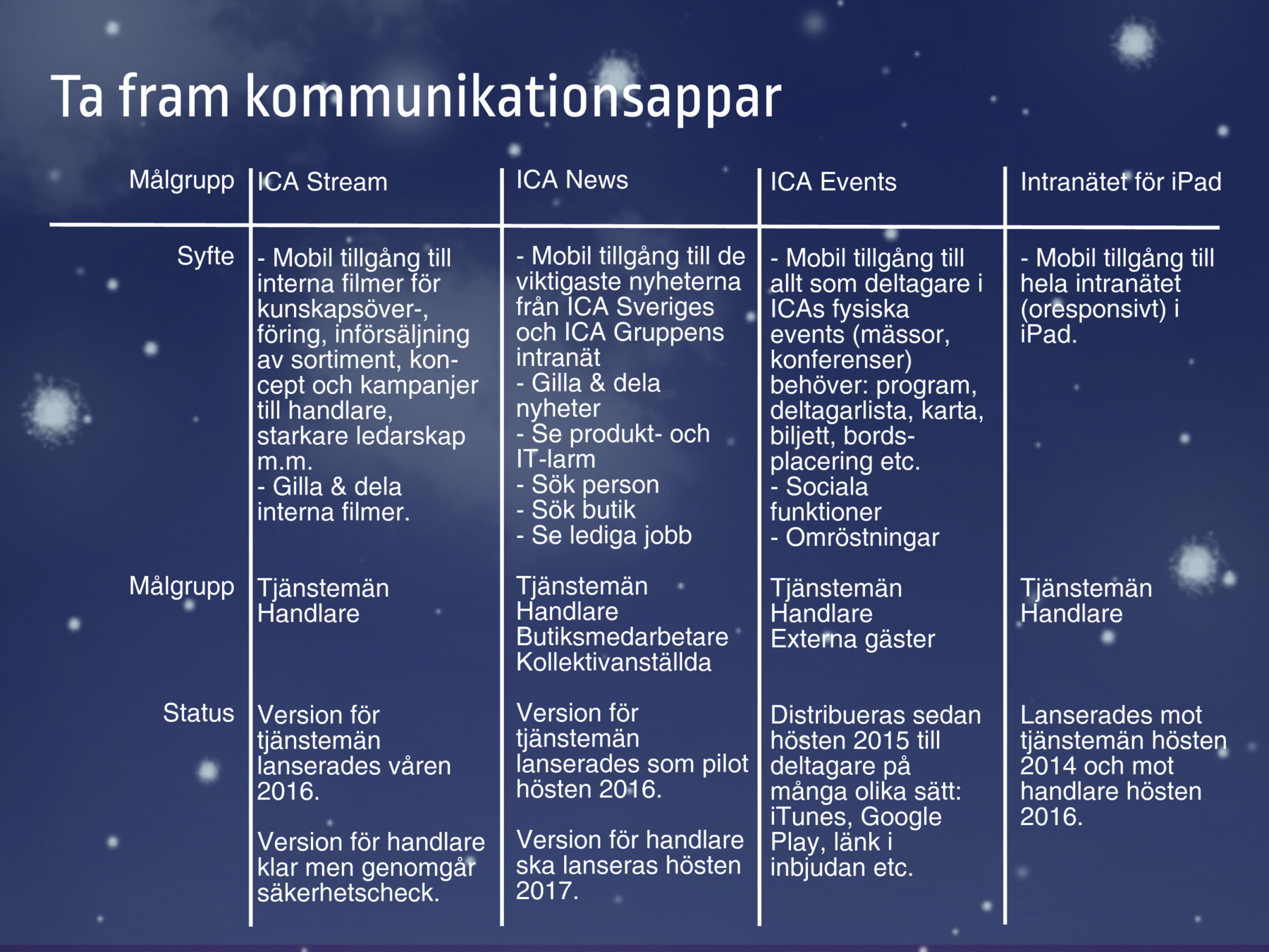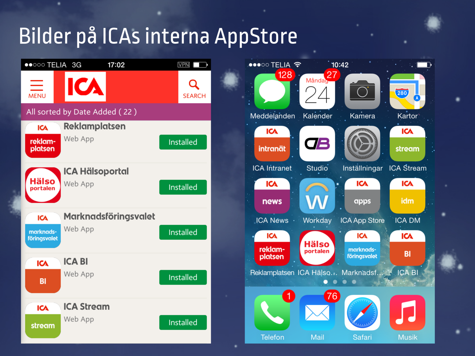 ICA Gruppen och ICA Sverige har 2014 till 2017 jobbat med att ta fram interna AppStores där medarbetare och handlare kan hitta nyttoappar och appar för kommunikation och information