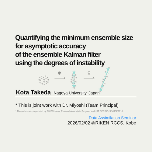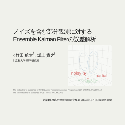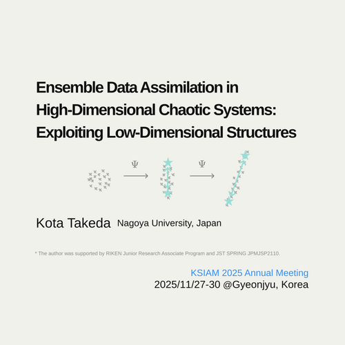- (T.) Kota Takeda, Error Analysis of the Ensemble Square Root Filter for Dissipative Dynamical Systems, PhD Thesis, Kyoto University, 2025.
