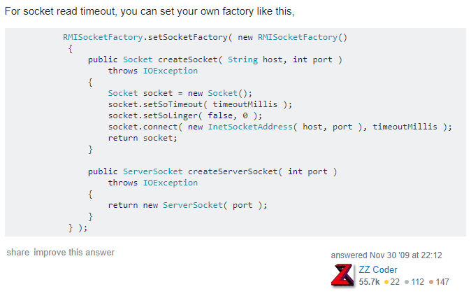 The value of this property represents the length of time (in milliseconds) that the client-side Java RMI runtime will use as a socket read timeout...