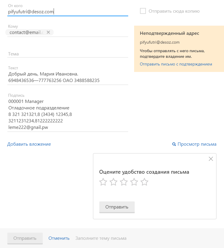 Валидация почты отправителя